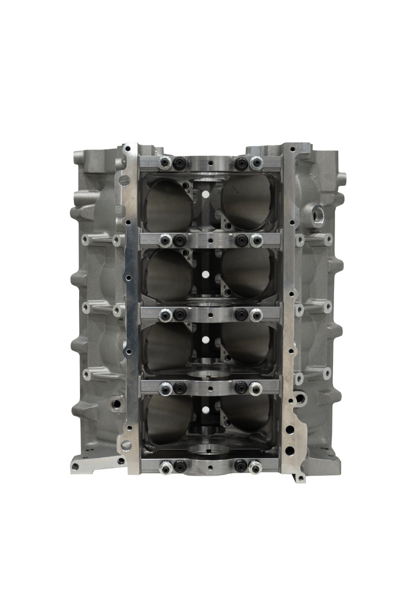 Billet main caps: Premium billet construction ensures stability and precision fitment. Utilizes M10 main studs and side bolts along with dowels on the inner studs of the block for superior clamping and reliability. Exclusive domed main cap design provides for maximum crankshaft support.