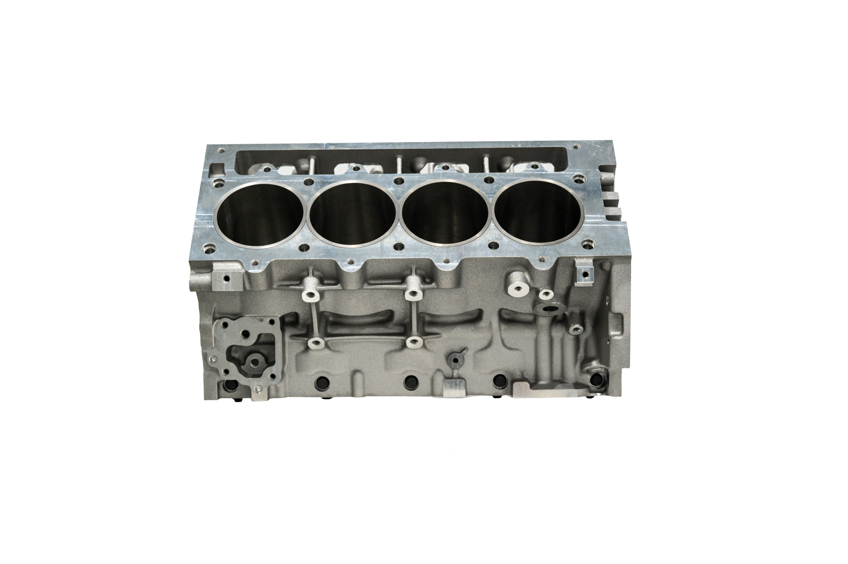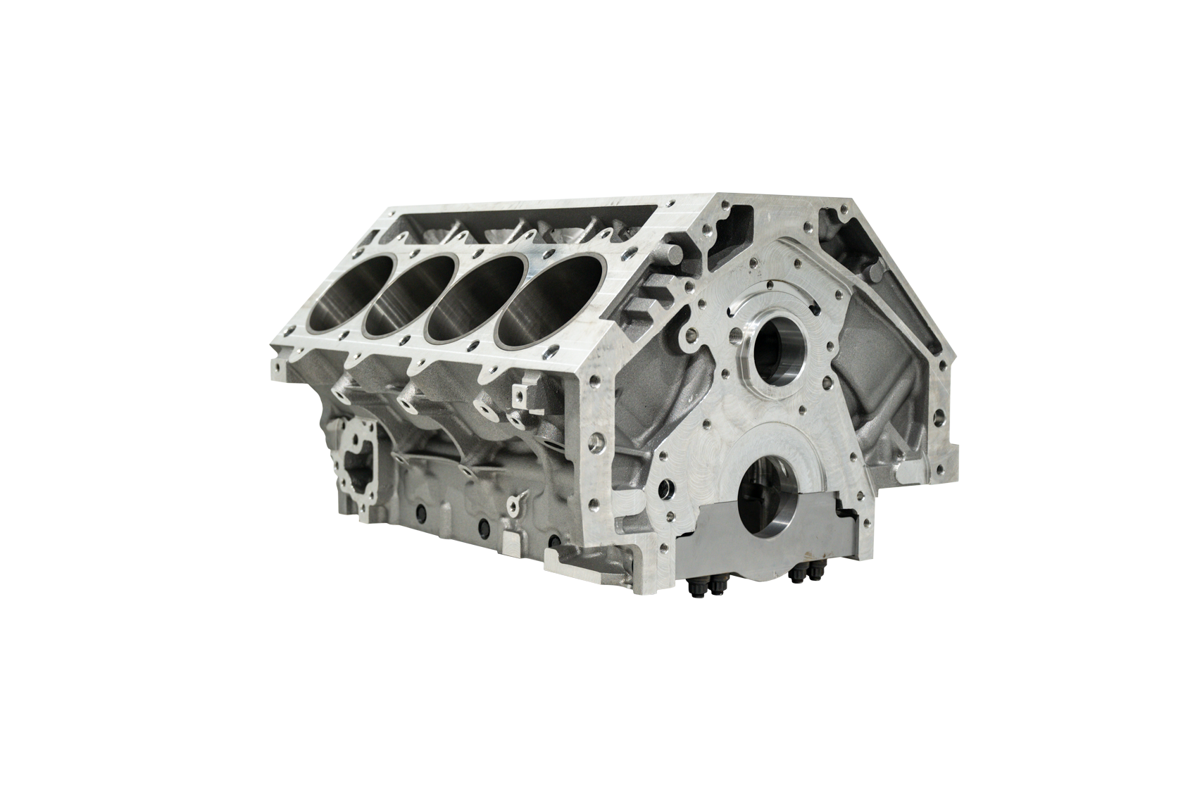 The camshaft and lifter bores are finish machined and ready for precision bearings and lifters.