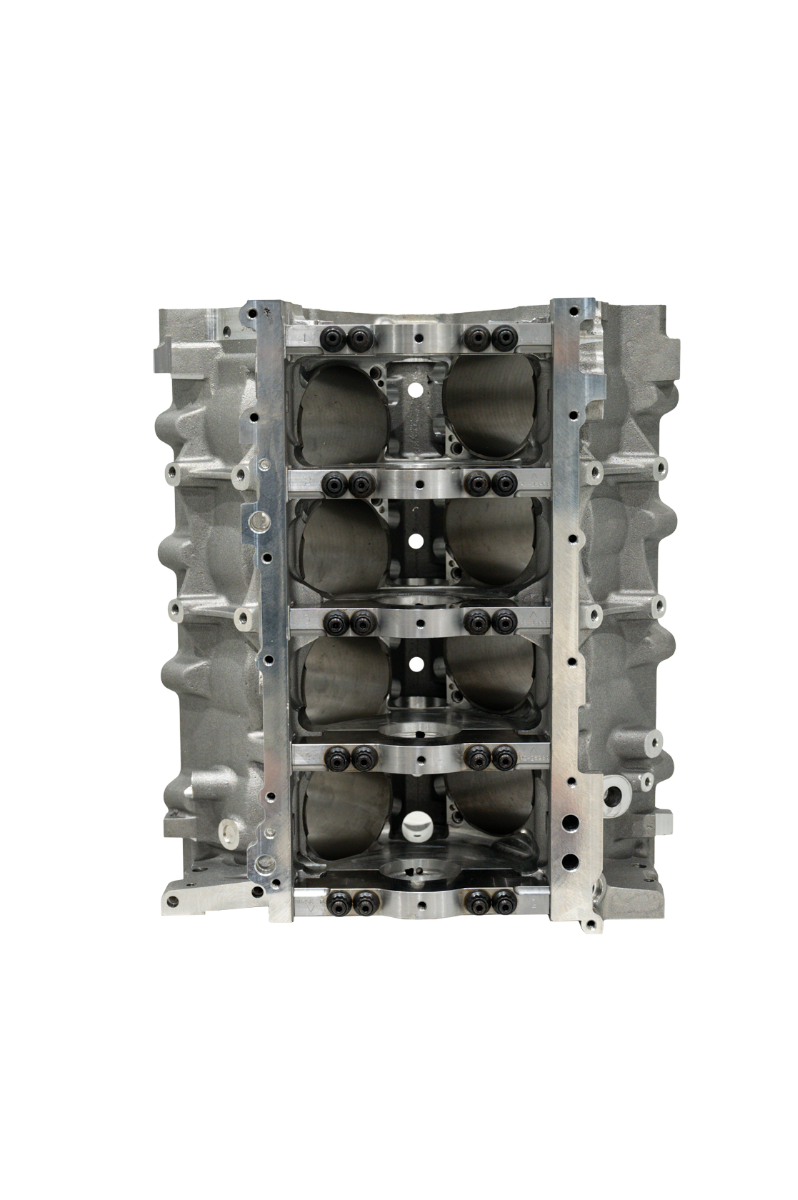 Billet main caps: Premium billet construction ensures stability and precision fitment. Utilizes 7/16-14” main studs and M10 side bolts along with dowels on the inner studs of the block for superior clamping and reliability. Exclusive domed main cap design provides for maximum crankshaft support.