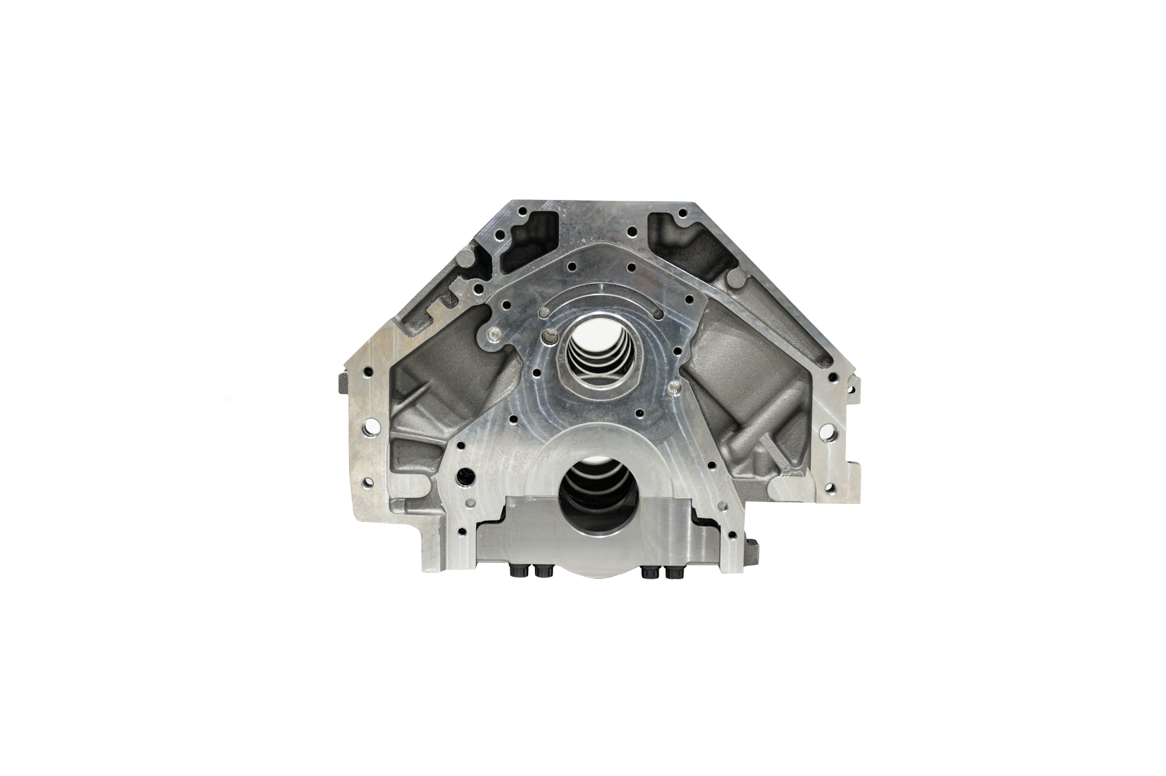 The camshaft and lifter bores are finish machined and ready for precision bearings and lifters.